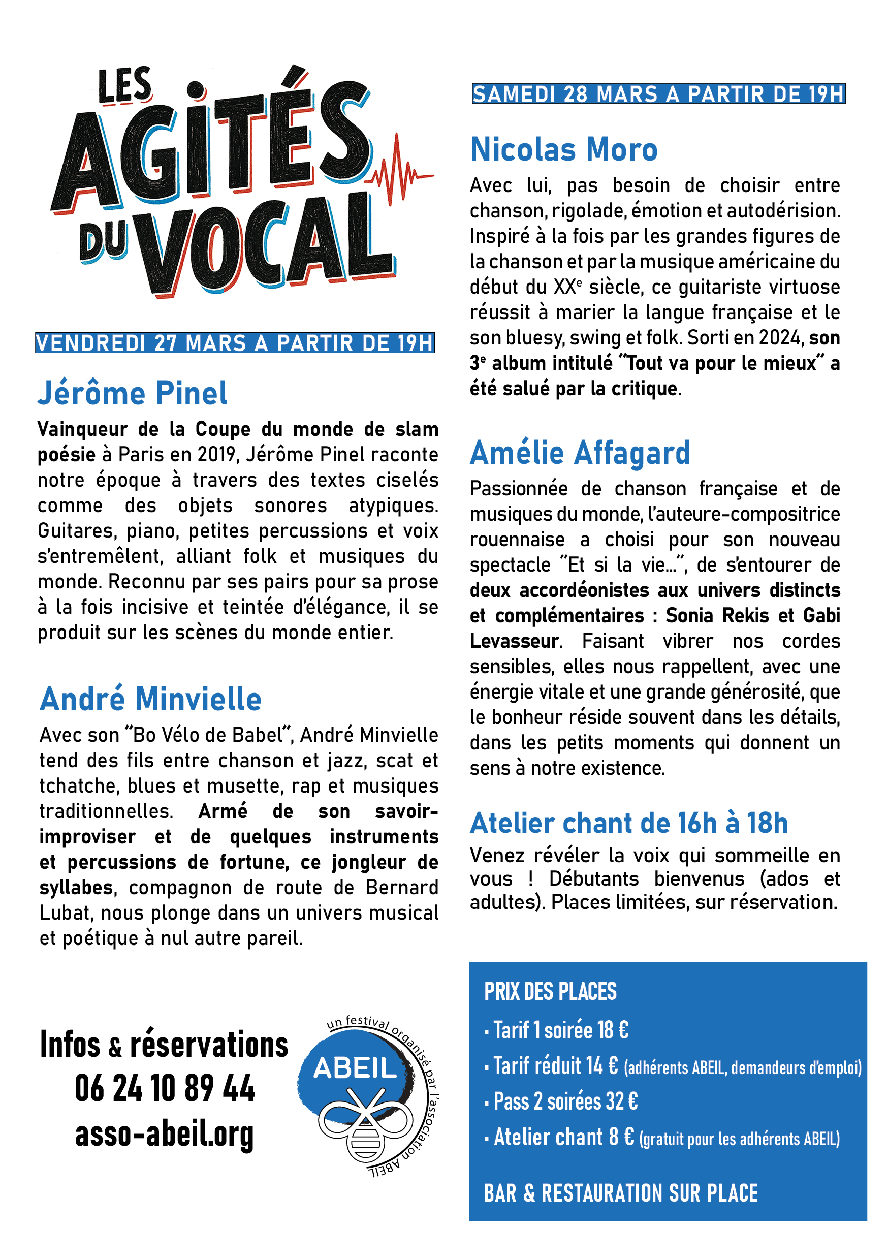 Devenu un rendez-vous incontournable pour tous les amoureux de chanson et d’humour, le festival Les Agités du vocal attire chaque année plusieurs centaines de spectateurs venus de la Neuville Chant d’Oisel et de la métropole rouennaise. Organisé par l’association ABEIL (Association bénévole d’entraide et d’initiative locale), il se caractérise par une programmation éclectique qui mêle artistes régionaux et têtes d’affiche nationales.